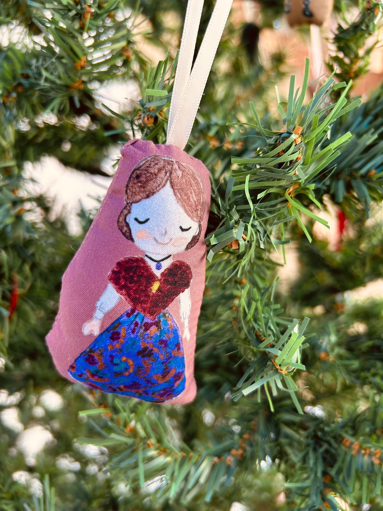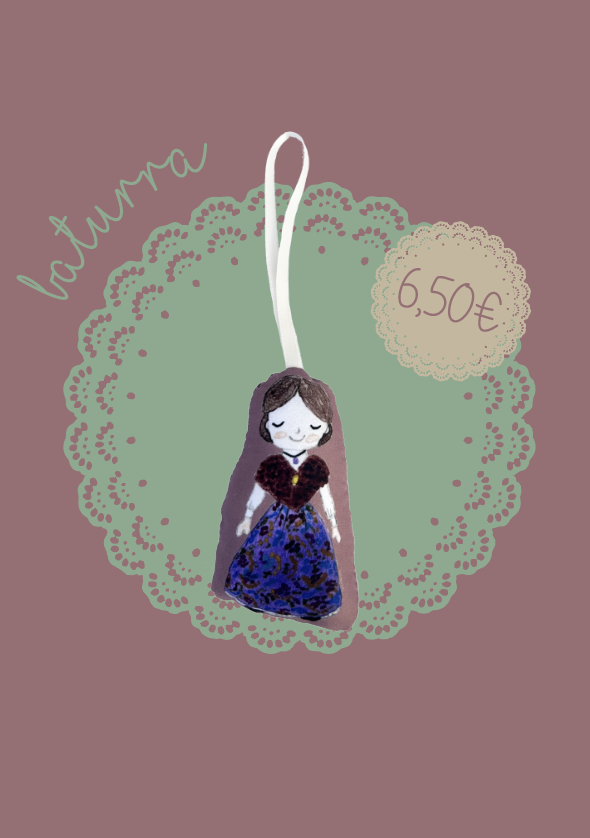 Adorno de Navidad de una baturra. Todos los adornos están diseñados y fabricados artesanalmente en Huesca, con popelín estampado y rellenos de guata.
