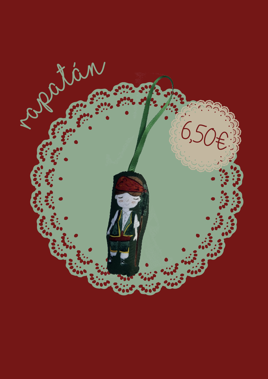 Adorno de Navidad del rapatán. Todos los adornos están diseñados y fabricados artesanalmente en Huesca, con popelín estampado y rellenos de guata.